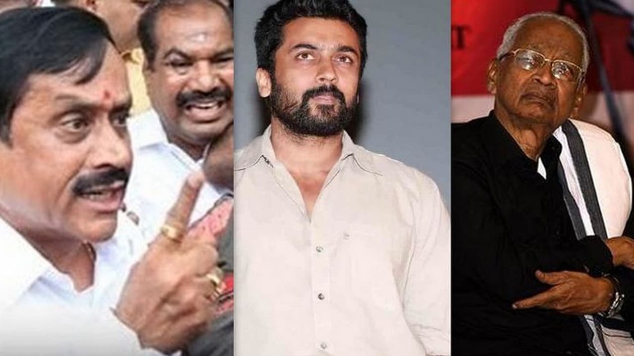புதிய கல்விக் கொள்கை பற்றி நடிகரும் அகரம் கல்வி அறக்கட்டளை பொறுப்பாளருமான சூர்யா பேசிய பேச்சு அவருக்கு கடுமையான எதிர்ப்புகளை கிளப்பிவிட்டிருக்கிறது. சூர்யா வன்முறையைத் தூண்டுகிறார் என்று ஹெச்.ராஜா சொன்னார். ‘இந்த புதிய கல்விக் கொள்கையை அதைப் பற்றி தெரியாதவர்களெல்லாம் பேசுகிறார்கள். உதய சூரியனை சின்னமாக கொண்டவர்தான் பேசுகிறார்கள் என்றால், நடிகர் சூர்யாவும் பேசுகிறார்’ என்று தமிழிசை சொன்னார். அதேபோல சினிமா துறையை உள்ளடக்கிய செய்தித்துறை அமைச்சரான கடம்பூர் ராஜூ, ‘சூர்யா அரைவேக்காட்டுத் தனமாக பேசுகிறார்’ என்று கடுமையாக பேசினார்.