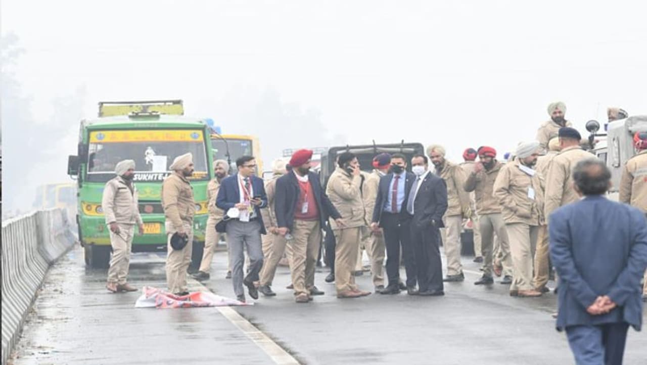 கார் பின்னர் நகர்கிறது, உயரடுக்கு சிறப்பு பாதுகாப்பு குழு பணியாளர்கள் ஒரு பாதுகாப்பு கேடயத்தை உருவாக்குகிறார்கள். பிரதமர் மோடி ஃபெரோஸ்பூரில் பேரணிக்கு காரில் சென்று கொண்டிருந்தபோது, அவரது கான்வாய் மேம்பாலத்தின் நடுவில் போராட்டத்தில் ஈடுபட்ட விவசாயிகளுடன் சிக்கியது.