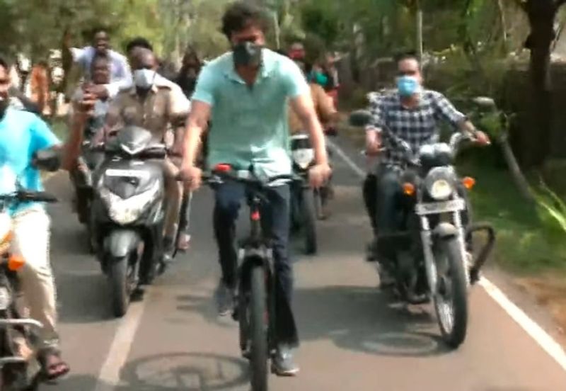 தமிழக சட்டசபை தேர்தலுக்கான வாக்குப்பதிவு விறுவிறுப்பாக நடைபெற்று வருகிறது. பல்வேறு அரசியல் கட்சி தலைவர்களும், நடிகர்களும் தங்களது வாக்குகளை பதிவு செய்து வருகின்றனர். அந்த வகையில் நடிகர் விஜய் தனது வீட்டில் இருந்து வாக்களிக்க நீலாங்கரை வரை சைக்கிளில் சென்று வாக்களித்தார்.
