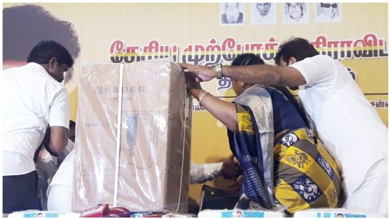 இந்நிலையில் கோயம்பேட்டில் உள்ள தேமுதிக அலுவலகத்தில் தொண்டர்களைச் சந்தித்த அவர் நலத்திட்ட உதவிகளை வழங்கினார். நீண்ட இடைவெளிக்குப் பிறகு விஜயகாந்த் கட்சி அலுவலகத்துக்கு வந்திருப்பது தொண்டர்களை உற்சாகமடைந்தனர். அதேவேளை பரிசு பொருட்களை எழுந்து நின்று கொடுக்க விஜயகாந்த் விடுப்பப்பட்டார். ஆனால், அவரது விருப்பத்தை கேட்காத பிரேமலதா விஜயகாந்தை உட்கார்ந்து கொண்டே கொடுக்க நிர்பந்தித்தார். அதனையும் மீறி விஜயகாந்த் எழுந்து நின்று பரிசு பொருட்களை கொடுக்க எழுந்தபோது பிரேலதா விஜயகாந்தை எதிர்பாராத விதமாக தள்ளி விட்டார்.