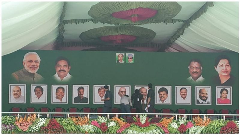 கூட்டணி பற்றி அதிகாரப்பூர்வமாக அறிவிக்கப்படாத நிலையில் பிரதமர் மோடி பங்கேற்க உள்ள பொதுக்கூட்ட மேடையில் தேமுதிக தலைவர் விஜயகாந்த், தமாகா தலைவர் ஜி.கே.வாசன் ஆகியோரது புகைப்படங்கள் இடம்பெற்றுள்ளன.