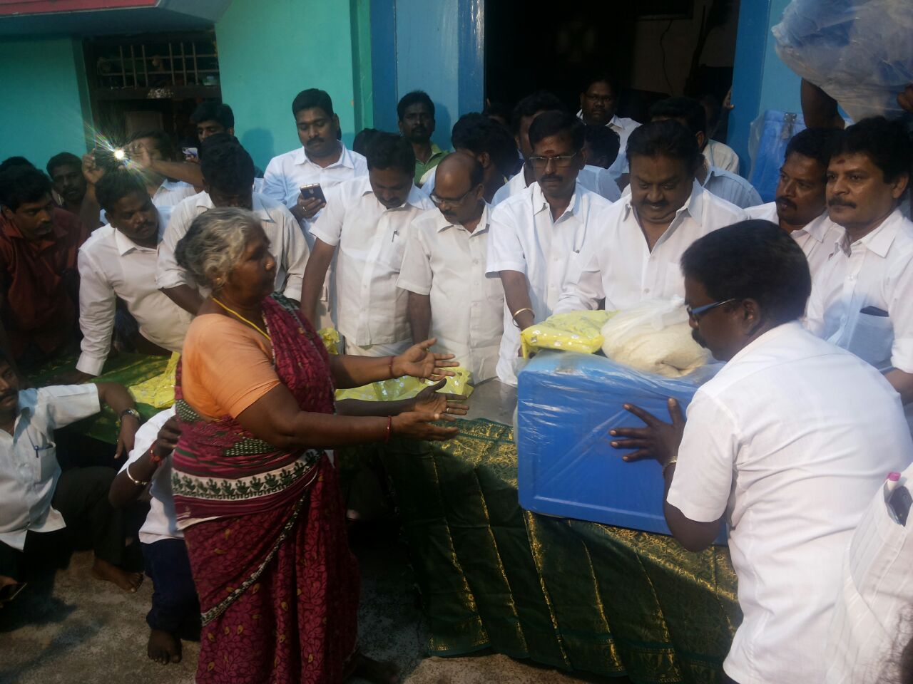 மற்ற அரசியல் கட்சி தலைவர்களை போல் வெறும் கையை வீசி கொண்டு வராமல் ஒரு வீட்டிற்கு தேவையான மளிகை பொருட்கள், அரிசி, மற்றும் மீன் வியாபாரம் செய்யும் மக்கள் என்பதால் மீன்களை வைக்கும் ஐஸ் பெட்டி, முதலியவற்றை அங்குள்ள மக்களுக்கு வழங்கினார்.