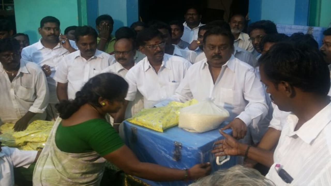 ஆனால் விஜயகாந்த் சம்பிரதாயத்துக்கு வராமல் பாதிக்கப்பட்ட மக்களுக்கு தேவையான பொருட்களும் கொடுத்து உதவினார்.