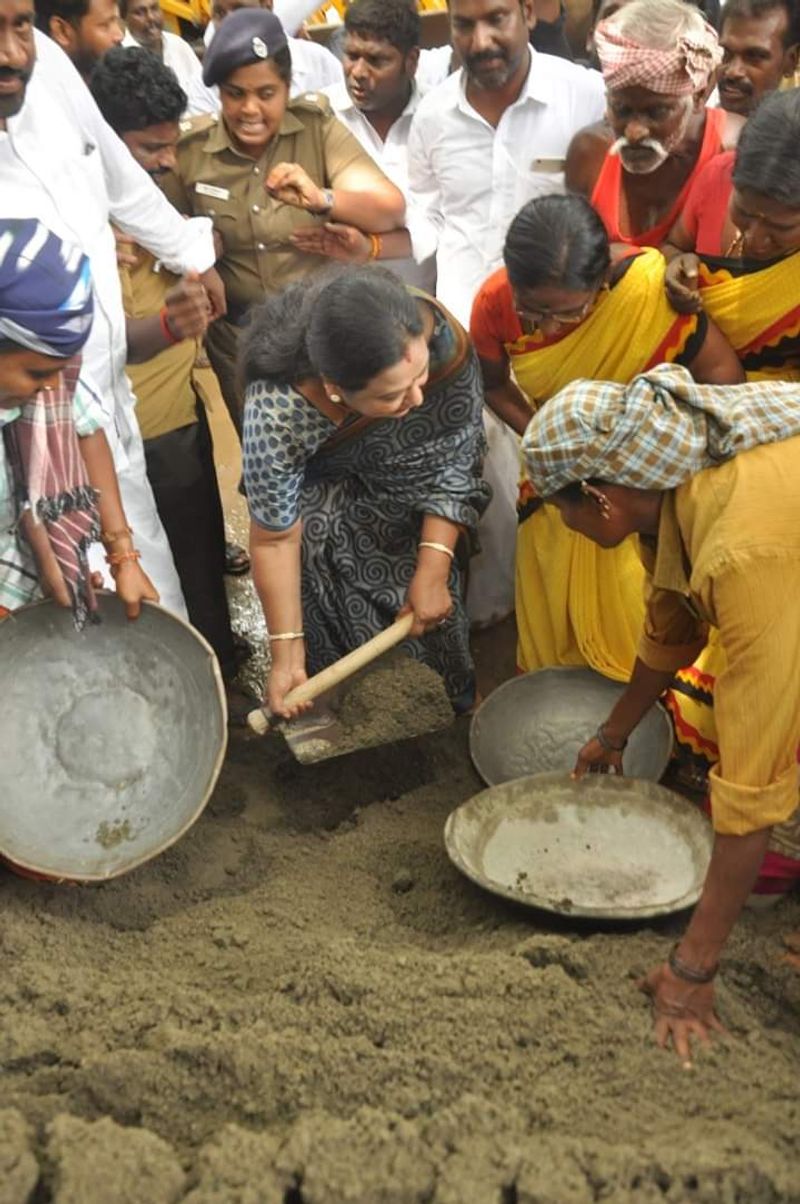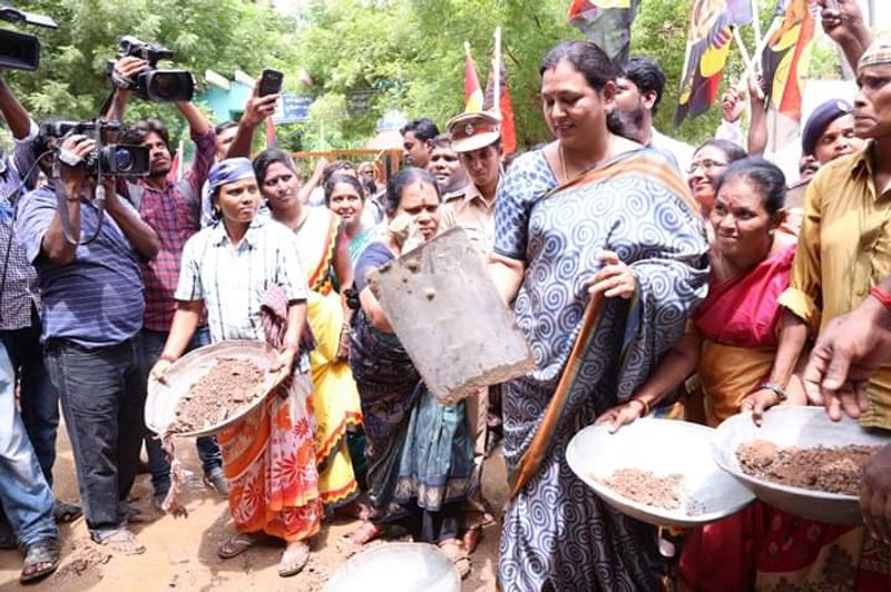 விஜயகாந்த் பிறந்த தினத்தை முன்னிட்டு தேமுதிகவின் மக்கள் பணிஎன்ற பெயரில் அவரது மனைவி பிரேமலதா விஜயகாந்த் சாலையில் இறங்கி மண் அள்ளிய சம்பவம் கட்சித் தொண்டர்களிடையே வரவேற்பை பெற்றுள்ளது.