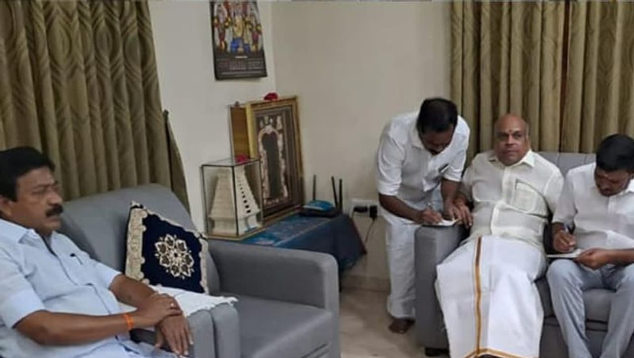 அதிமுகவில் ஓ.பன்னீர்செல்வம், எடப்பாடி பழனிசாமி இடையே ஒற்றை தலைமை விவகாரம் உச்சக்கட்ட மோதல் நீட்டித்து வரும் நிலையில் நாடாளுமன்ற தேர்தலுக்குள் டிடிவி.தினகரன் கட்சியை ஒழிக்க வேண்டும் என அதிமுக மாவட்ட செயலாளர்களுக்கு இபிஎஸ் உத்தரவிட்டுள்ளதாக தகவல் வெளியானது. அதன் முன்னோட்டமாக விழுப்புரம் அமமுக வடக்கு மாவட்ட செயலாளரும், விழுப்புரம், கள்ளக்குறிச்சி, கடலூர், புதுச்சேரி மண்டல பொறுப்பாளருமான பாலசுந்தரம், விழுப்புரம் கிழக்கு மாவட்ட செயலாளர் அய்யனார் ஆகியோர் முன்னாள் அமைச்சர் சி.வி.சண்முகம் முன்னிலையில் அதிமுகவில் இணைந்து டிடிவி.தினகரனை கடும் அதிர்ச்சி அடைய செய்துள்ளார். இன்று முறைப்படி எடப்பாடி பழனிசாமி முன்னிலையில் இணைய உள்ளார்.