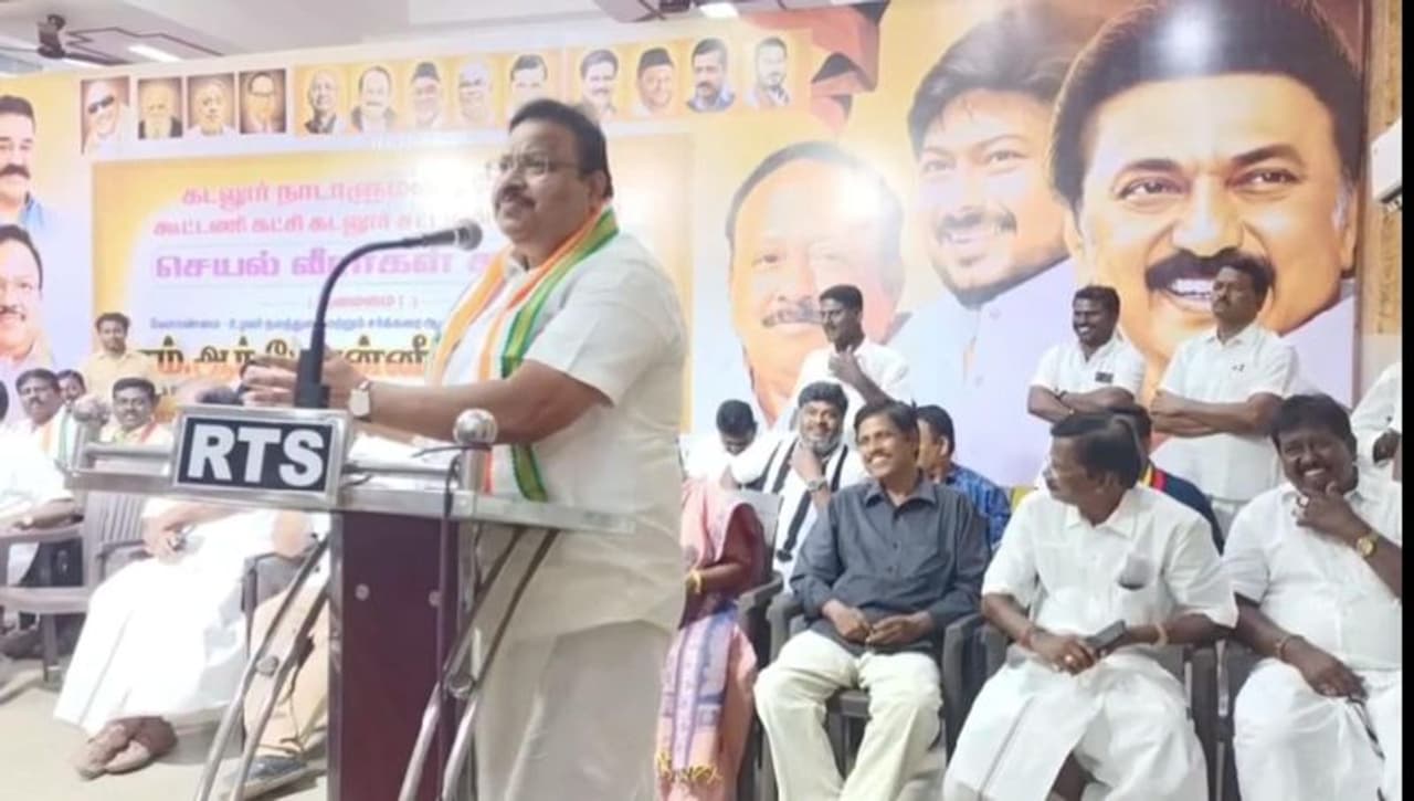 நாடாளுமன்ற தேர்தலையொட்டி பிரச்சாரம் தீவிரம் அடைந்து வருகிறது. அந்த வகையில், கடலூரில் திமுக கூட்டணி கட்சி செயல் வீரர்கள் கூட்டம் நடைபெற்றது. தனியார் திருமண மஹாலில் நடைபெற்ற கூட்டத்தில், அமைச்சர் எம். ஆர்.கே பன்னீர்செல்வம், கடலூர் சட்டமன்ற உறுப்பினர் கோ. ஐயப்பன், விருத்தாச்சலம் சட்டமன்ற உறுப்பினர் நெடுஞ்செழியன், காங்கிரஸ் வேட்பாளர் விஷ்ணுபிரசாத் கலந்துகொண்டனர் .