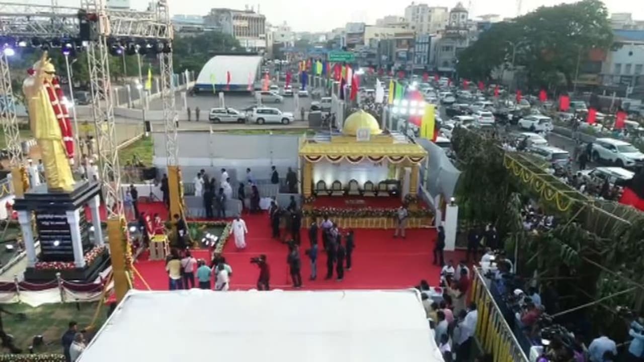 சென்னை ஓமந்தூரார் அரசினர் தோட்ட வளாகத்தில் முன்னாள் முதல்வர் கருணாநிதியின் 16 அடி முழு உருவ சிலையை குடியரசு துணைதலைவர் வெங்கையா நாயுடு திறந்து வைத்தார்.