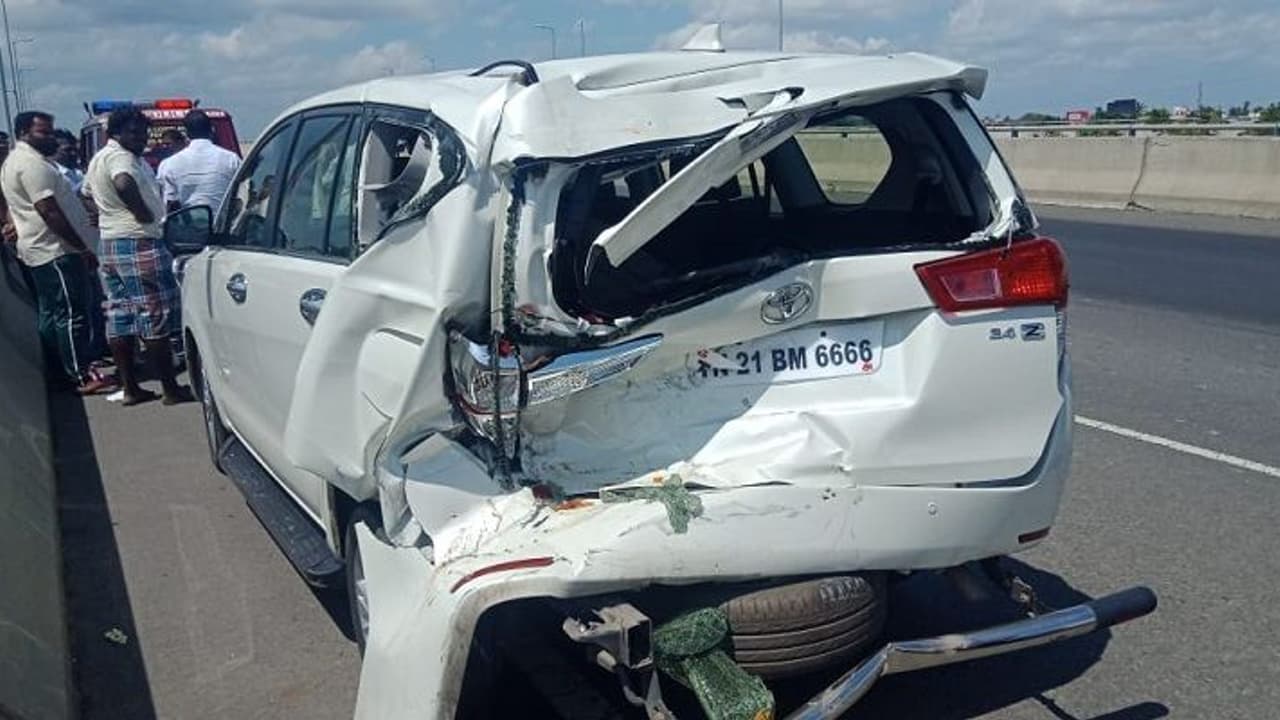 இந்த விபத்தில் காஞ்சிபுரம் அதிமுக மாவட்ட கழக செயலாளர் வாலாஜாபாத் கணேசன் அதிர்ஷ்டவசமாக உயிர் தப்பினார்.