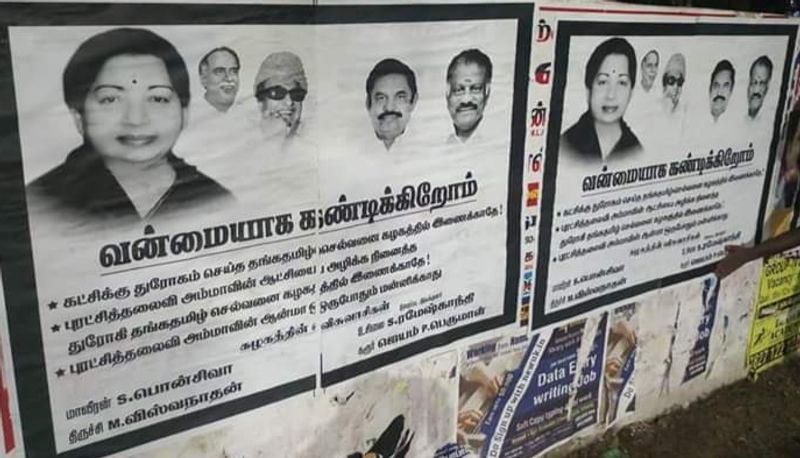 இந்நிலையில் தங்கதமிழ் செல்வனுக்கு எதிராக தமிழகம் முழுவதும் அனல் அடிக்கும் வால்போஸ்டர்கள் ஒட்டப்பட்டுள்ளன. அதில் கட்சிக்கு துரோகம் செய்த தங்கதமிழ்செல்வனை கழகத்தில் இணைக்காதே… ஜெயலலிதா ஆட்சியை மழிக்க நினைத்த துரோகி தங்கதமிழ் செல்வன்… அம்மா ஆன்மா தங்கதமிழ் செல்வனை ஒரு போதும் மன்னிக்காது என அந்த வால்போஸ்டரில் தெரிவிக்கப்பட்டுள்ளன.