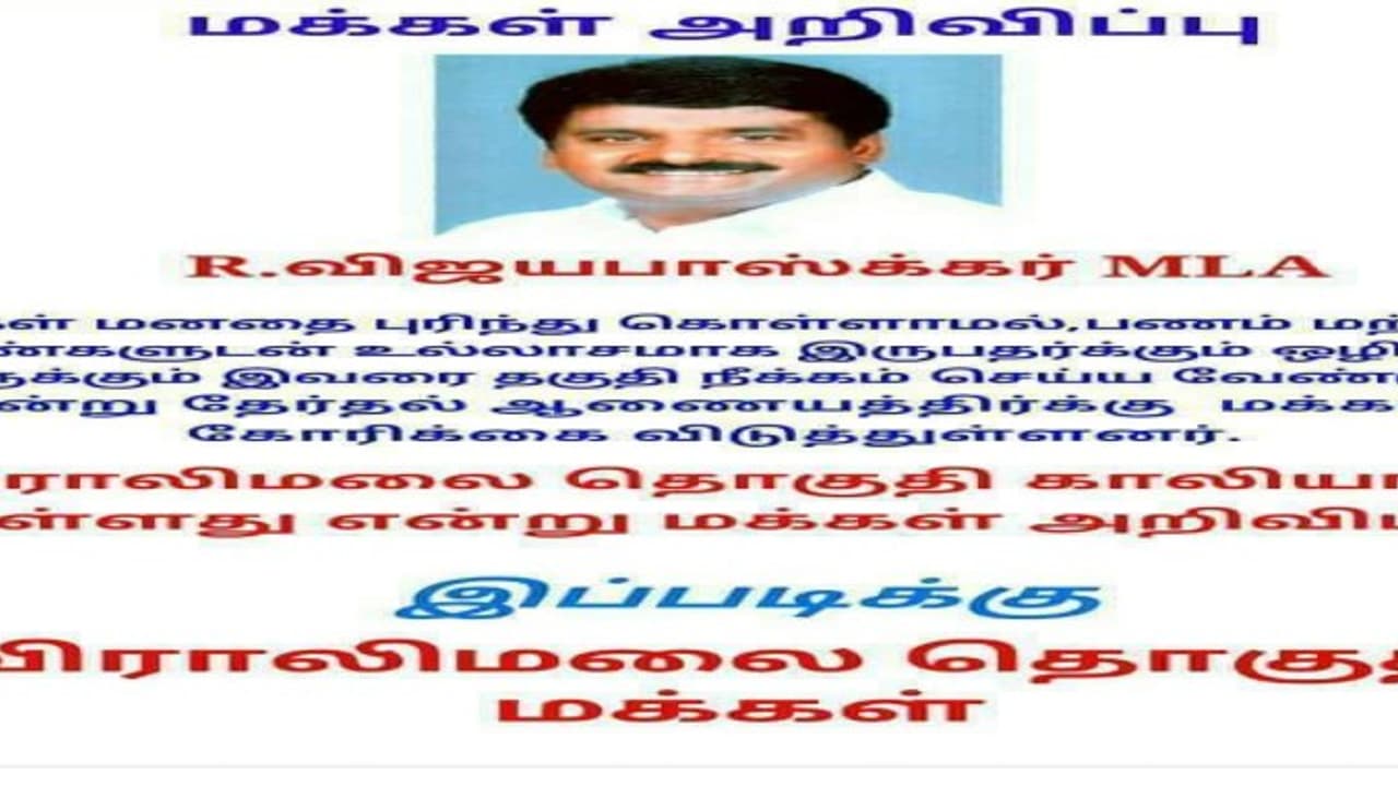விராலிமலை தொகுதி காலி…அமைச்சர் விஜய பாஸ்கரை கலாய்த்து வரும் பொது மக்கள்..