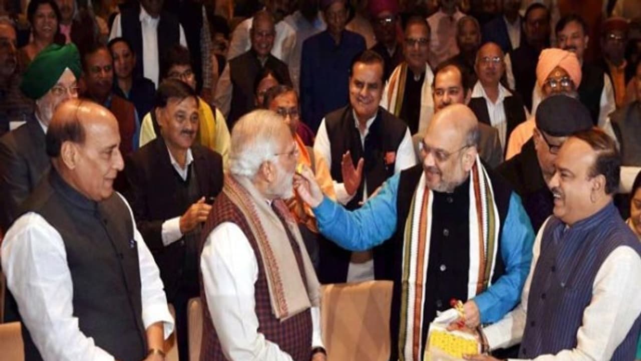 குஜராத் மாநிலத்தில்6-வது முறையாக பா.ஜனதா ஆட்சி அமைக்க உதவிய பிரதமர் மோடிக்கு மாலை அணிவித்து, இனிப்புகளை வழங்கினார் கட்சியின் தலைவர் அமித் ஷா. அதன்பின் எம்.பி.க்கள் மத்தியில் பிரதமர் மோடி உணர்ச்சி பொங்க பேசுகையில், “ இந்திரா காந்தி ஆட்சியில்கூட காங்கிரஸ் கட்சி 18 மாநிலங்களில்தான் ஆட்சியில் இருந்தது. ஆனால், இப்போது, பா.ஜனதா கட்சி 19 மாநிலங்களை ஆட்சி செய்து வருகிறது என்று பேசியதாக செய்திகள் தெரிவிக்கின்றன.