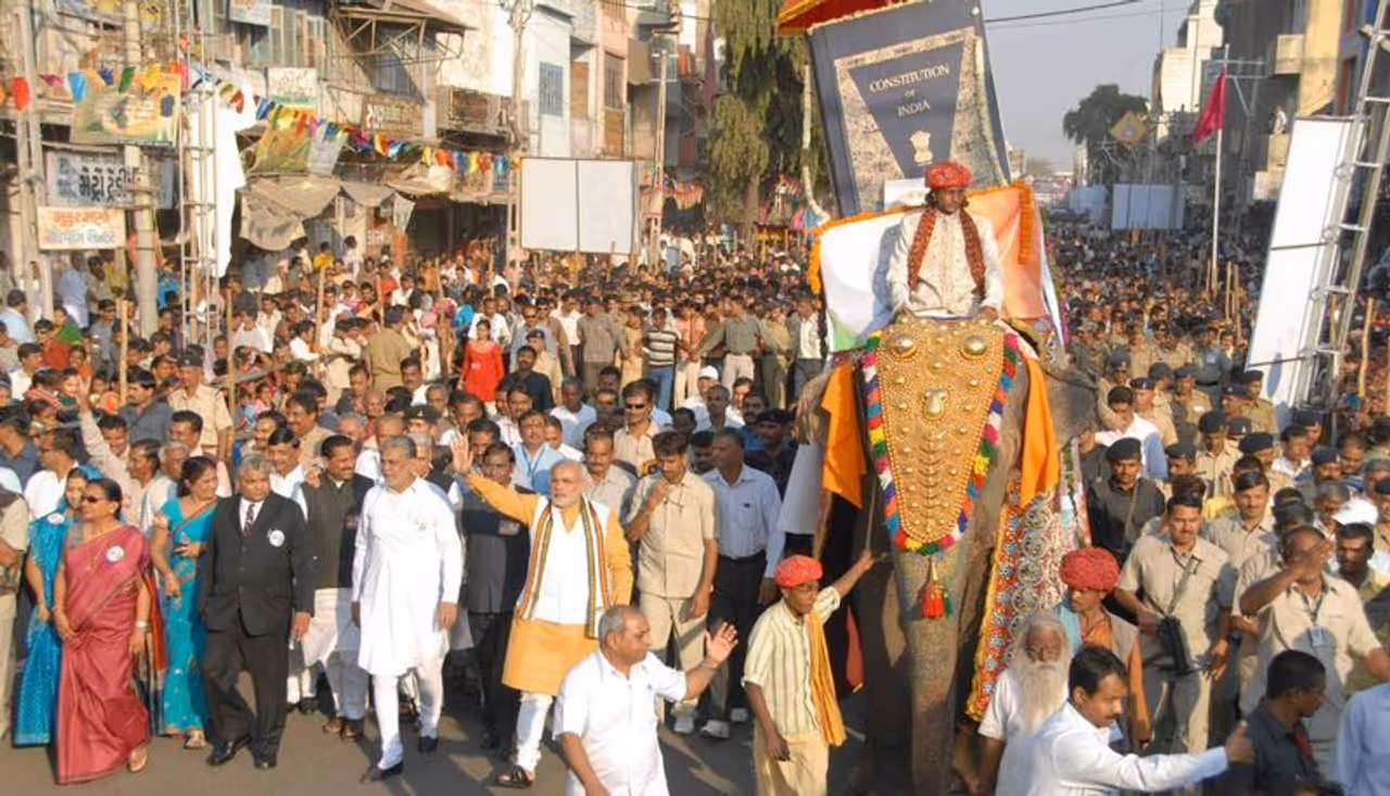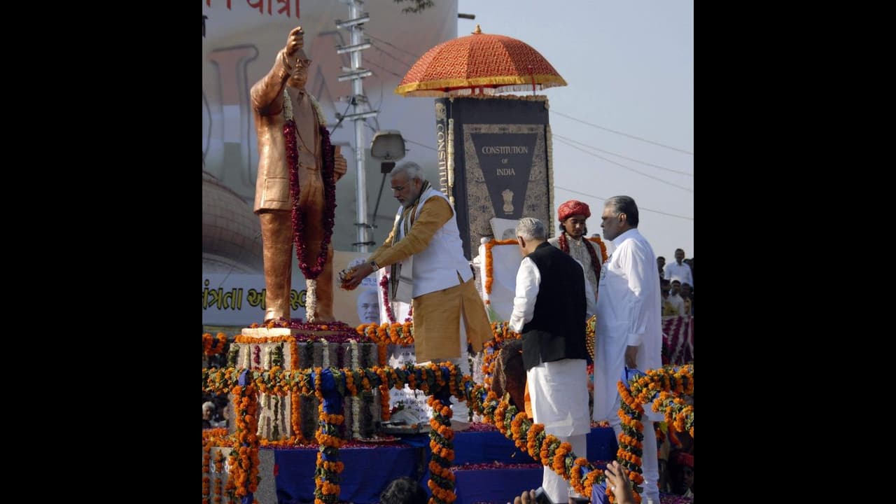 கடந்த 2010ஆம் ஆண்டில் அரசியலமைப்பின் 60 ஆண்டுகளைக் குறிக்கும், வகையில் குஜராத்தில் சுரேந்திர நகரில் சம்விதன் கௌரவம் என்ற யாத்திரையை ஏற்பாடு செய்தோம், அதில் அரசியலமைப்பின் பிரதியை யானையின் மீது வைத்து அது நகரில் பல பகுதிகளுக்கு ஊர்வலமாக கொண்டு செல்லப்பட்டது. அந்த ஊர்வலத்தில் நானும் கலந்து கொண்டேன், இது ஒரு தனித்துவமான அஞ்சலி என பிரதமர் மோடி அதற்கான புகைப்படத்தை தனது ட்விட்டர் பக்கத்தில் பதிவிட்டுள்ளார்.