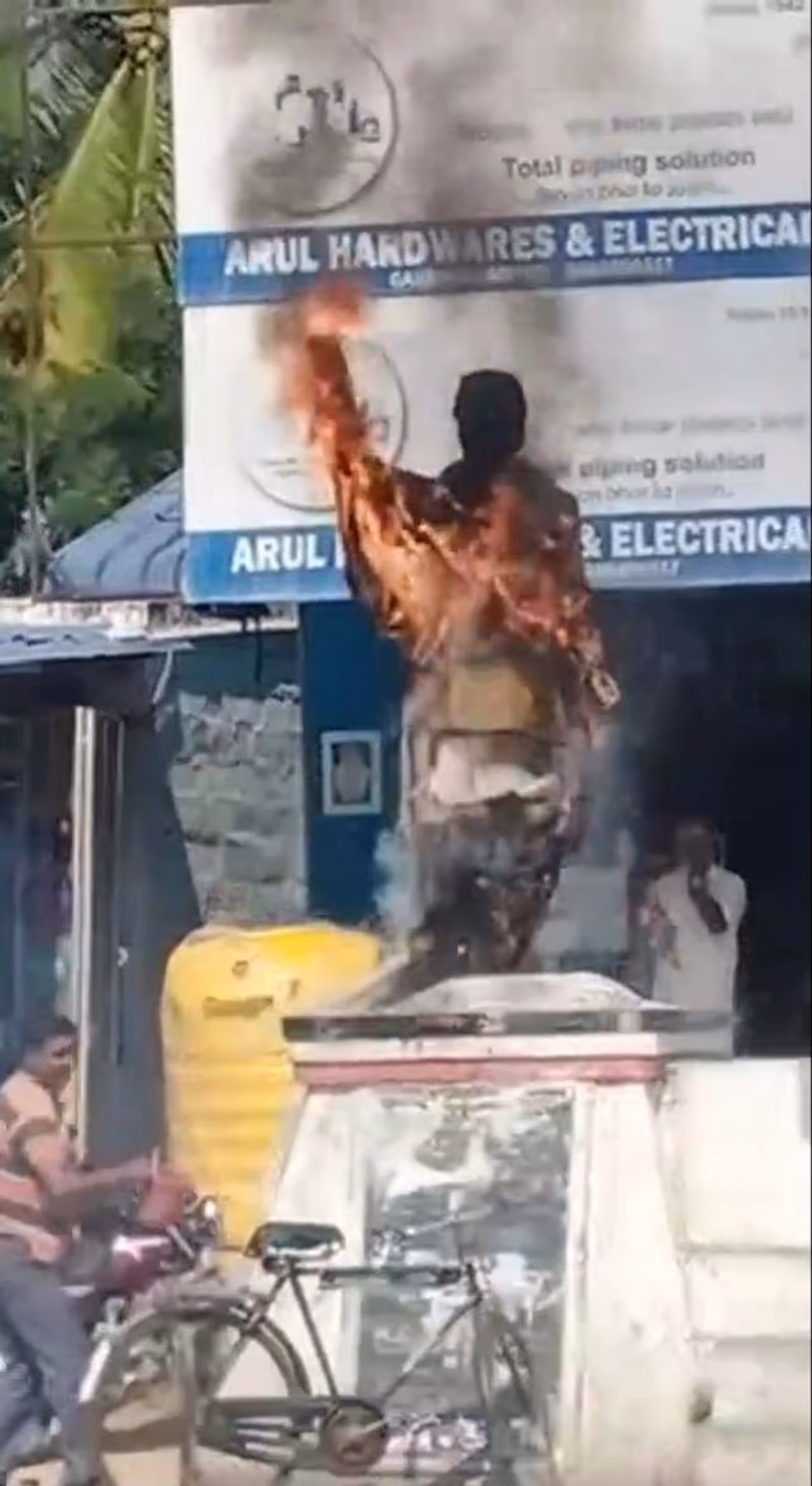 திமுக தலைவர் மு.க ஸ்டாலின் பிறந்த நாள் விழா தமிழகம் முழுவதும் அவரது கட்சித் தொண்டர்களால் கொண்டாடப்பட்டது. இந்நிலையில் திருப்பத்தூர் மாவட்டம் கந்திலி ஒன்றியத்திற்குட்பட்ட கெஜல்நாயக்கன்பட்டி பேருந்து நிலையம் அருகே ஸ்டாலின் பிறந்த நாள் விழாவை கொண்டாடும் வகையில் அதிமுகவினர் பட்டாசு வெடித்து கொண்டாடினர். அப்போது அங்கிருந்த எம்ஜிஆர் சிலை அருகில் பட்டாசு வெடித்ததில் தீ எம்ஜிஆர் சிலை மீது விழுந்து, சிலை தீ பற்றி எரிந்தது. இதை கண்ட அதிமுகவினர் கொந்தளிப்பு அடைந்தனர். உடனே அதை கண்டித்து அதிமுக ஒன்றிய செயலாளர் மணிகண்டன் தலைமையில் சாலை மறியல் போராட்டம் நடைபெற்றது.