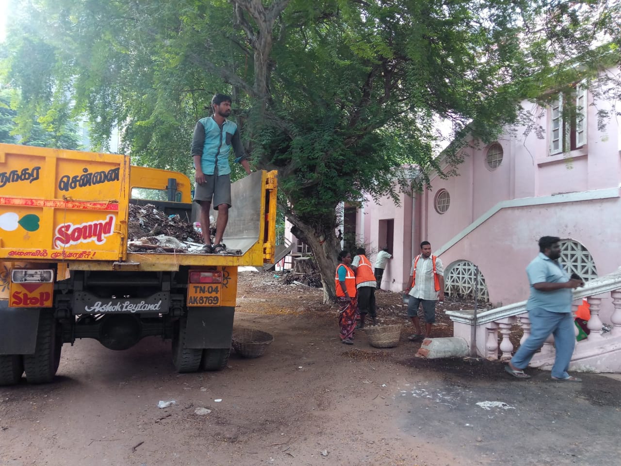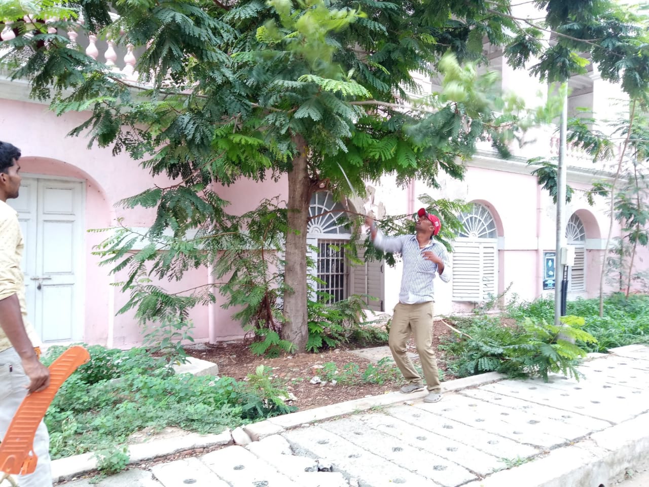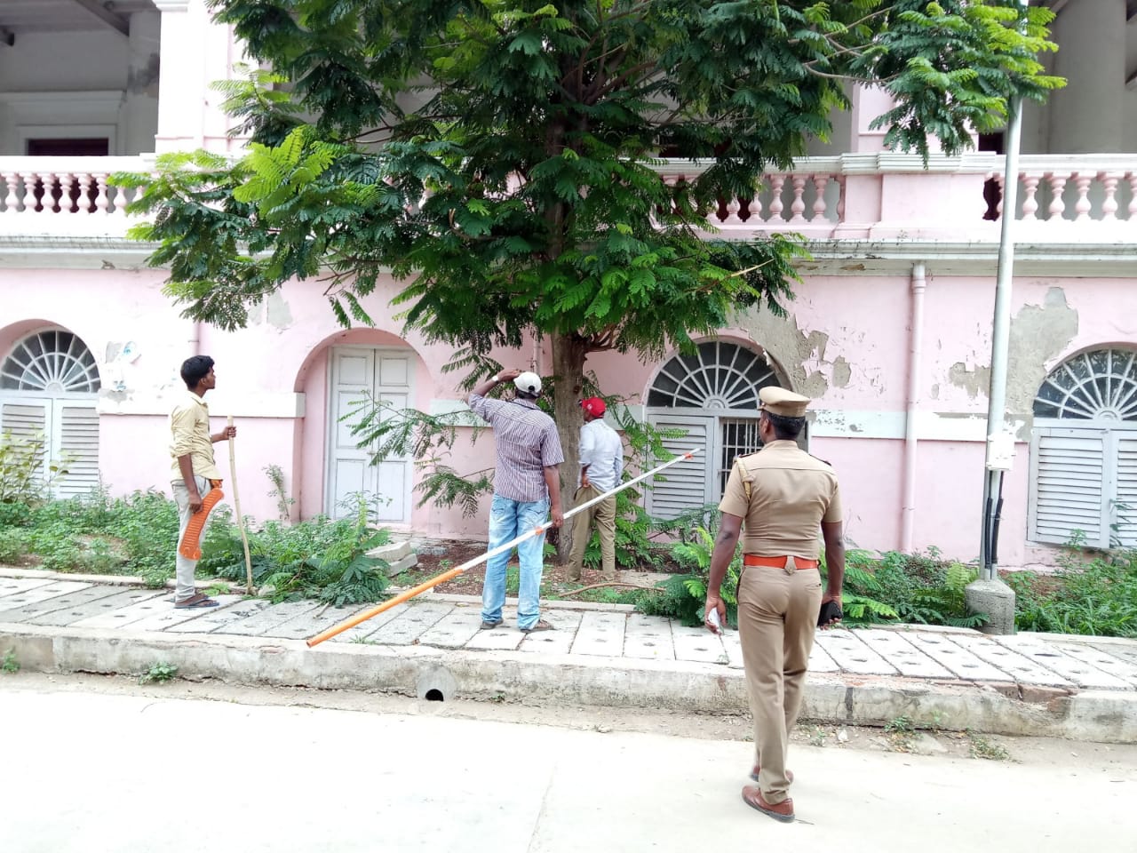 மரம் செடி கொடிகளை அகற்றும் ஊழியர்கள்