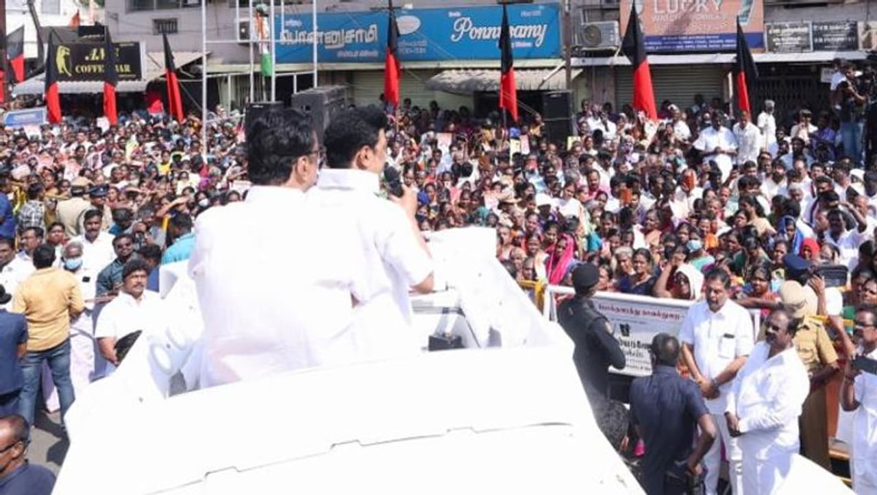 கடந்த தேர்தலில் திருமகன் ஈவெரா 9 ஆயிரம் வாக்குகள் வித்தியாசத்தில் வெற்றி பெற்றுள்ளார். இந்த இடைத்தேர்தலில் அதிமுக வேட்பாளர் டெபாசிட் இழக்கும் அளவிற்கு உங்கள் ஆதரவு இருக்க வேண்டும். என்னுடைய ஆட்சி காலத்திலேயே நீட் தேர்வுக்கு விலக்கு பெற வேண்டும் என்பதுதான் எனது லட்சியம் என முதலமைச்சர் மு.க.ஸ்டாலின் தெரிவித்துள்ளார்.
