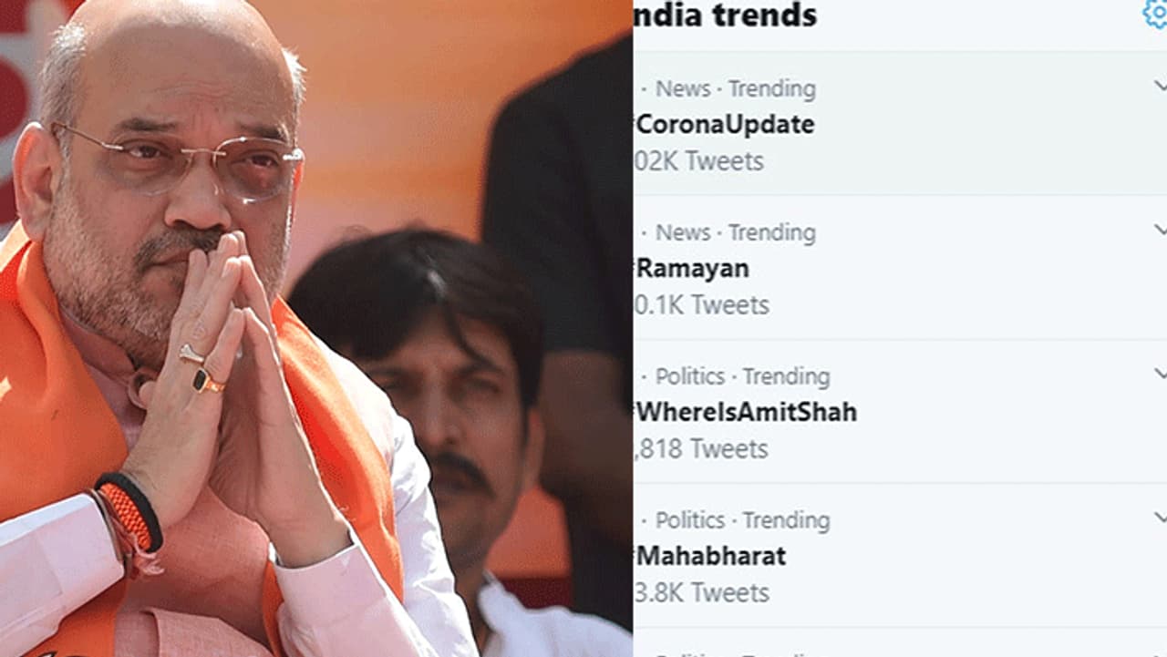 இப்படிப்பட்ட இக்கட்டான சூழலில் ட்விட்டரில் அமித்ஷா குறித்து "அமித்ஷா எங்கே"என #WhereIsAmitShah என்ற ஹேஷ்டேக் மூலம் ட்விட்டரில் டிரெண்டாக்கப்பட்டு வருகிறது. அந்த ஹேஷ்டேக்கை பயன்படுத்தி பதிவிட்டுள்ள பலர், கெரோனா வைரஸ் காரணமாக 3 மாதங்கள் சுய தனிமைப்படுத்துதலை கடைபிடிக்கிறார் அமித்ஷா என்று பதிவிட்டுள்ளனர். இன்னும் சிலரோ, அவருடைய முகத்தை மறைப்பதற்காக மாஸ்க் தயாரித்துக்கொண்டிருக்கிறார் என்று பதிவிட்டுள்ளனர்.