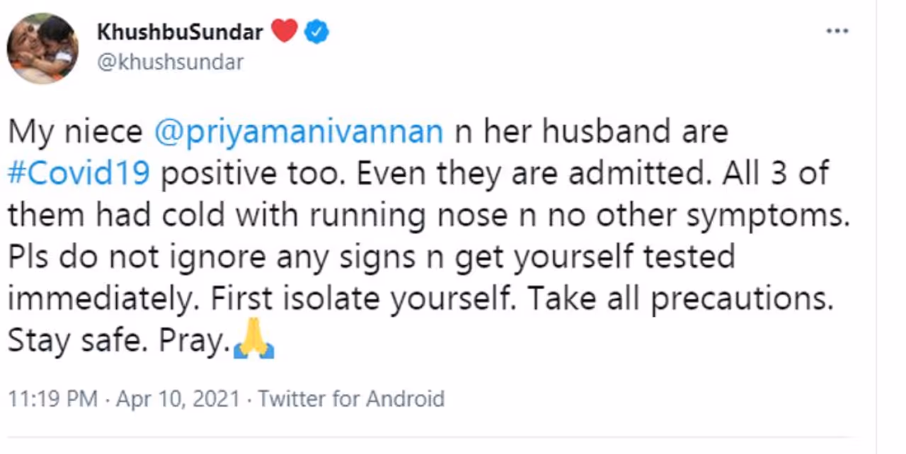 இந்நிலையில், பா.ஜ.க நிர்வாகியான குஷ்பு கடந்த 20ம் தேதி தமிழ்நாடு காவல்துறை டி.ஜி.பி சைலேந்திர பாபுவை சந்தித்து புகார் ஒன்றை கொடுத்தார். அதில் “எனது ட்விட்டர் பக்கம் முடக்கப்பட்டுள்ளது. இது குறித்து ட்விட்டர் நிறுவனத்திடம் புகார் கொடுத்த பிறகும் எந்த பயனுமில்லை. எனது ட்விட்டர் பக்கத்தை தவறாக யாரும் பயன்படுத்தி விடக்கூடாது. எனது ட்விட்டர் பக்கத்தை முடக்கியவர்கள் யார் என்று கண்டுபிடித்து உரிய நடவடிக்கை எடுக்கும்படி” புகாரில் குஷ்பு கேட்டுக் கொண்டு இருந்தார்.