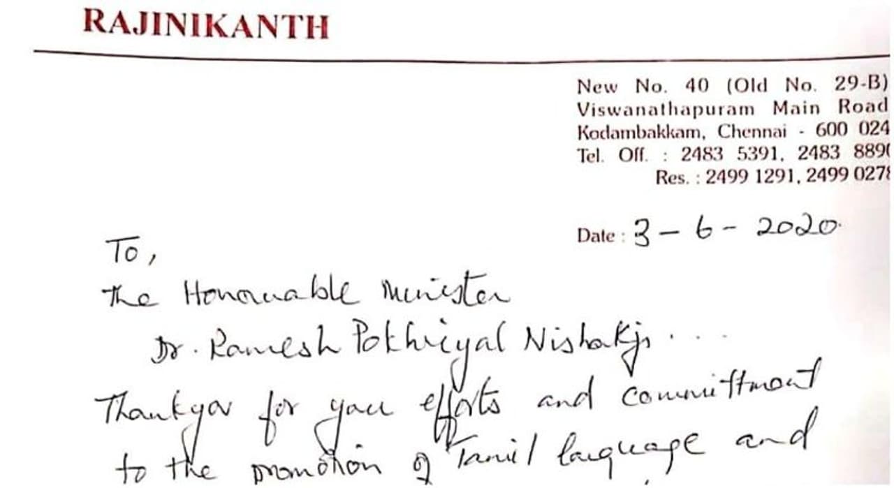 கடந்த சில தினங்களுக்கு முன்பு செம்மொழி தமிழாய்வு மத்திய நிறுவனத்தின் முதல் இயக்குனராக பேராசிரியர் ஆர்.சந்திரசேகரன் நியமிக்கப்பட்டார். இதை மத்திய மனிதவள மேம்பாட்டுத்துறை அமைச்சர் ரமேஷ் பொக்ரியால் நிஸ் தன்னுடைய ட்விட்டர் பக்கத்தில் பதிவிட்டார். அந்தப் பதிவை பிரதமர் மோடி, உள்துறை அமைச்சர் அமித் ஷா, தமிழக முதல்வர் எடப்பாடி பழனிச்சாமி, ஆகியோருடன் ‘டேக்’ செய்திருந்தார். பிரதமர், முதல்வருடன் ‘டேக்’ செய்ததோடு சம்பந்தம் இல்லாமல் நடிகர் ரஜினியையும் அமைச்சர் பொக்ரியல் ‘டேக்’ செய்திருந்தார். அதுவும் ‘புரோட்டாகா’லுக்கு மாறாக தமிழக உயர்க் கல்வி துறை அமைச்சர் அன்பழகன், பள்ளிக் கல்வித் துறை அமைச்சர் செங்கோட்டையன் ஆகியோர் பெயர்களுக்கு முன்னால் ‘டேக்’ செய்திருந்தார் மத்திய அமைச்சர்.