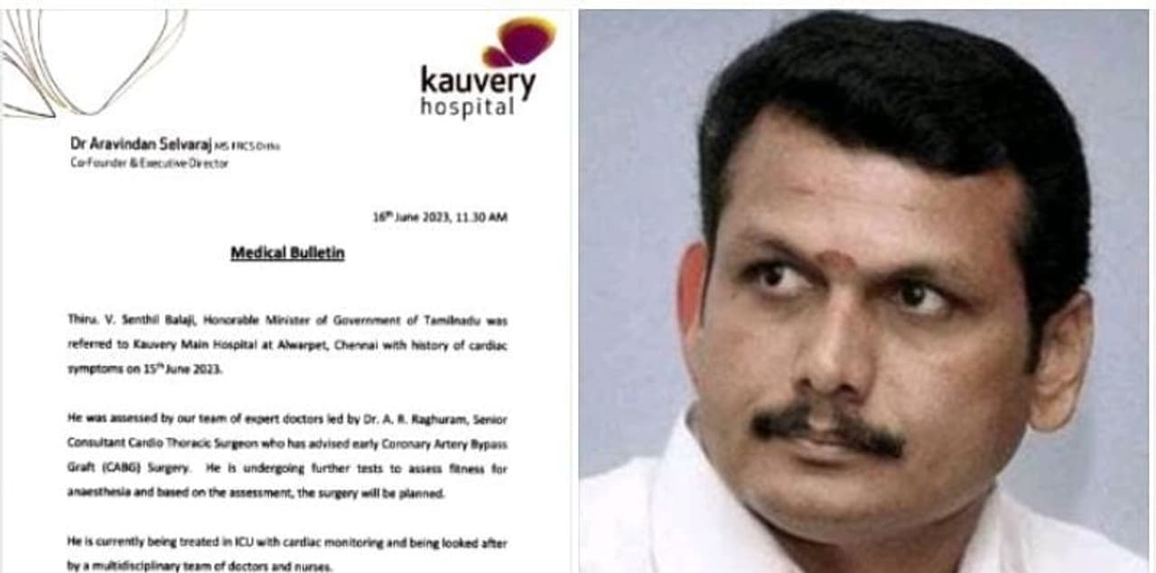 அதிமுக ஆட்சி காலத்தில் நடைபெற்ற போக்குவரத்து துறை மோசடி தொடர்பாக 10 ஆண்டுகளுக்கு பிறகு அமலாக்கத்துறை அமைச்சர் செந்தில் பாலாஜியிடம் விசாரணை நடத்தி கைது செய்தது. செந்தில் பாலாஜியை கைது செய்து அழைத்து சென்ற போது திடீரென ஏற்பட்ட நெஞ்சு வலி காரணமாக மருத்துவமனையில் சிகிச்சைக்காக அனுமதிக்கப்பட்டார். அப்போது ஓமந்தூரார் மருத்துவமனை மருத்துவர்கள் செந்தில் பாலாஜிக்கு ஆஞ்சியோ பரிசோதனை மேற்கொண்டனர். அதில் இருதய பகுதியில் 3 அடைப்பு இருப்பதாக தெரியவந்தது. தொடர்ந்து அறுவை சிகிச்சை செய்யவும் பரிந்துரை செய்யப்பட்டது. இதனையடுத்து நீதிமன்றத்தின் அனுமதியோடு செந்தில் பாலாஜி காவேரி மருத்துவமனைக்கு நேற்று மாற்றம் செய்யப்பட்டார்.