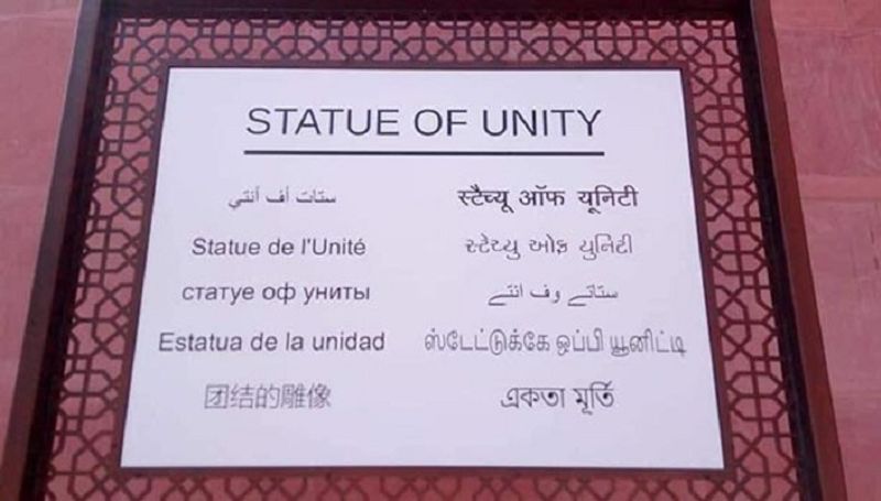 உலகின் மிக உயரமான வல்லபாய் பட்டேலின் சிலையின் கீழ் வைக்கப்பட்டுள்ள கல்வெட்டில் தமிழ் மொழி பெயர்ப்பு தவறாக வைக்கப்பட்டுள்ளது பெரும் அதிர்ச்சியை ஏற்படுத்தியுள்ளது