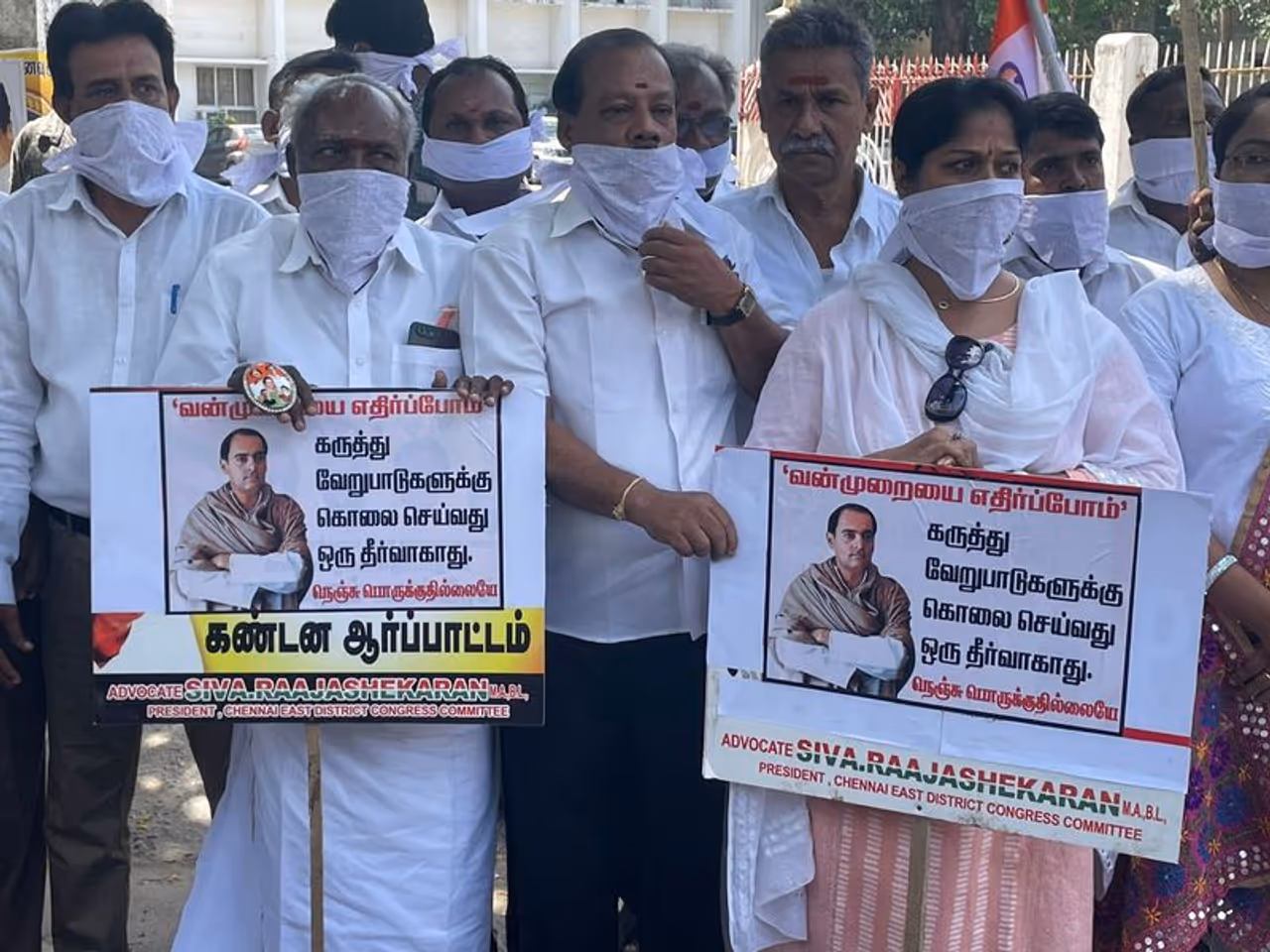 ஆனால் இந்த விவகாரத்தில் பல ஆண்டுகளாக காங்கிரஸ் கட்சி எதிர்ப்பு தெரிவித்து வந்தது. இந்நிலையில் பேரறிவாளன் விவகாரத்தை காங்கிரஸ் கட்சியினர் கருப்பு நாள் என விமர்சித்து வருகின்றனர். பேரறிவாளன் விடுதலை செய்யப்பட்டதை கண்டித்து தமிழ்நாடு காங்கிரஸ் கமிட்டி சார்பாக சென்னை சத்தியமூர்த்தி பவனில் மாவட்டத் தலைவர் சிவராஜ் தலைமையில் வெள்ளைத் துணியால் வாயைக் கட்டிக் கொண்டு காங்கிரஸ் கட்சியினர் அறப்போராட்டத்தில் ஈடுபட்டனர். போராட்டத்தில் கிட்டத்தட்ட 50 க்கும் மேற்பட்டோர் கலந்து கொண்டனர். அப்போராட்டத்தின் போது செய்தியாளர்களை சந்தித்த காங்கிரஸ் கமிட்டியின் மாநில துணைத்தலைவர் பொன். கிருஷ்ணமூர்த்தி நேற்று காங்கிரஸ் கமிட்டியின் மாநில தலைவர் கே.எஸ் அழகிரி விடுத்த அறிக்கையின் அடிப்படையில் இன்று அறப்போராட்டம் நடைபெறுகிறது.