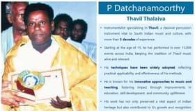 புதுச்சேரியைச் சேர்ந்த மூத்த தவில் இசை கலைஞர் தட்சிணாமூர்த்திக்கு 2025 குடியரசு தினத்தை முன்னிட்டு பத்மஶ்ரீ விருது அறிவிக்கப்பட்டுள்ளது. ஐம்பது ஆண்டுகளுக்கும் மேலாக தவில் வாசித்து வரும் இவர், 15,000க்கும் மேற்பட்ட இசை நிகழ்ச்சிகளை நடத்தியுள்ளார்.