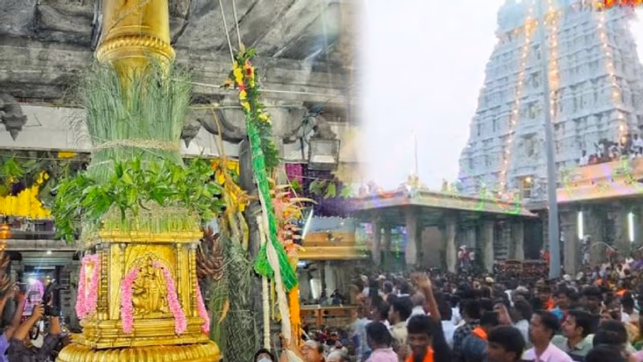 இந்நிலையில், இன்று காலை 5.45 மணியளவில் சிவாச்சாரியார்கள் வேத மந்திரம் ஓத, விண்ணை பிளந்த பக்தர்களின் அரோகரா முழக்கங்கள் மற்றும் சிறப்பு பூஜைகளுடன் சாமி சன்னதியில் உள்ள 64 அடி உயரம் கொண்ட தங்க கொடிமரத்தில் கொடியேற்றம் நடைபெற்றது.