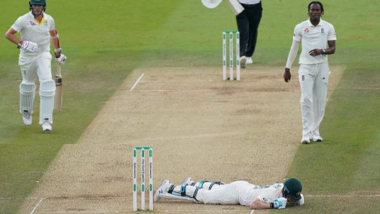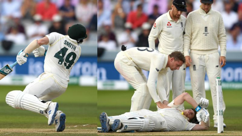 148 கிமீ வேகத்தில் ஆர்ச்சர் வீசிய அந்த பவுன்ஸருக்கு ஸ்மித் ரியாக்ட் செய்வதற்குள், பந்து வேகமாக வந்து ஸ்மித்தின் பின் கழுத்து பகுதியில் பலமாக அடித்தது. அதில் நிலைகுலைந்து கீழே விழுந்தார் ஸ்மித்.