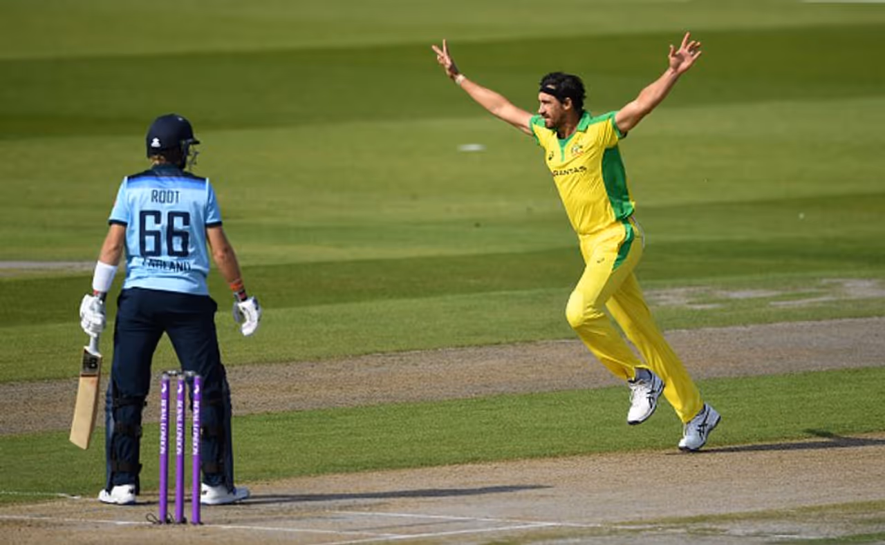இங்கிலாந்து அணி தொடக்க வீரர் ஜேசன் ராய் மற்றும் ஜோ ரூட் ஆகிய இருவரின் விக்கெட்டையும் இன்னிங்ஸின் முதல் 2 பந்தில் இழந்தது. ராய் மற்றும் ரூட் ஆகிய இருவரையும் கோல்டன் டக் அவுட்டாக்கி அனுப்பினார் மிட்செல் ஸ்டார்க்.