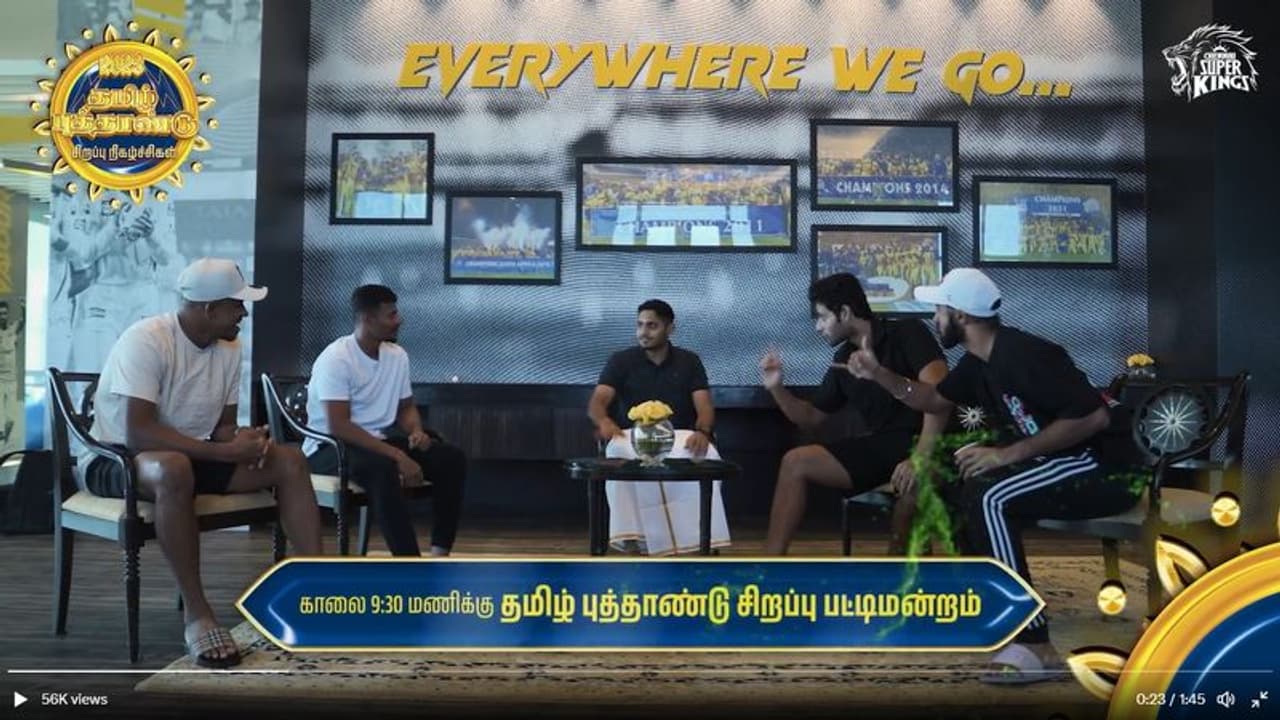 தமிழ் புத்தாண்டு தினத்தை சென்னை சூப்பர் கிங்ஸ் அணி வீரர்கள், பட்டிமன்றம், சோறு தான் முக்கியம், ராசி பலன் என்று பல நிகழ்ச்சிகள் மூலமாக சிறப்பாக கொண்டாடி அனைவருக்கும் புத்தாண்டு வாழ்த்து தெரிவித்துள்ளனர்.