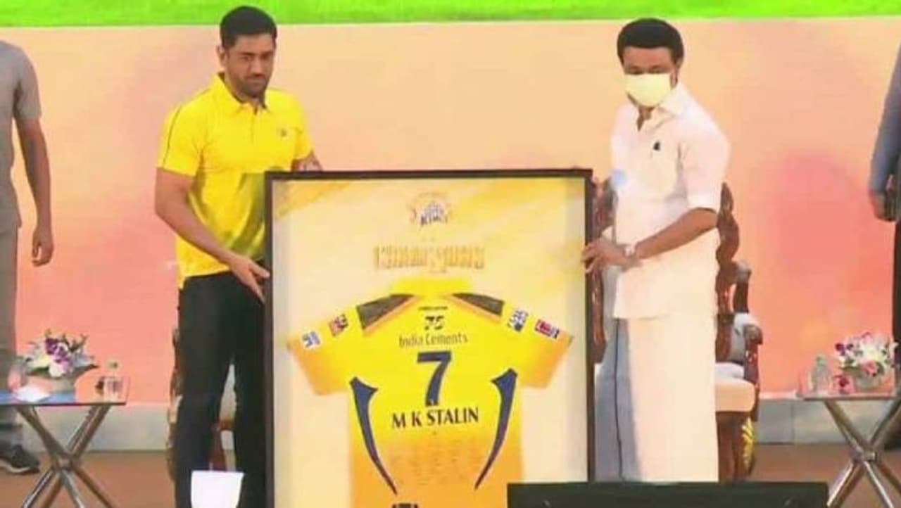 இந்த விழாவில் கலந்துகொண்ட முதல்வர் மு.க.ஸ்டாலினுக்கு, எம்.எஸ்.தோனி ஜெர்சி ஒன்றை நினைவுப் பரிசாக வழங்கினார். அந்த ஜெர்சியில் MK Stalin என பெயர் அச்சடிக்கப்பட்டிருந்ததோடு, தோனியின் பேவரைட் நம்பரான 7 அதில் இடம்பெற்று இருந்தது.