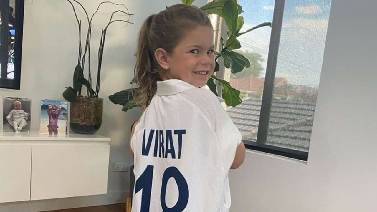விராட் கோலி கொடுத்த ஜெர்சியால் வார்னரின் நடு மகள் செம மகிழ்ச்சியில் ஆழ்ந்துள்ளார்.