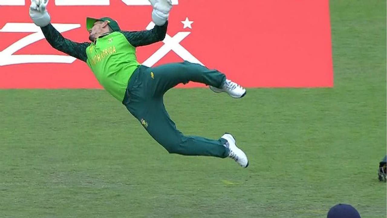 இந்தியா - தென்னாப்பிரிக்கா இடையேயான போட்டியில் இந்திய அணியின் கேப்டன் விராட் கோலியின் கேட்ச்சை தென்னாப்பிரிக்க விக்கெட் கீப்பர் குயிண்டன் டி காக் அபாரமாக கேட்ச் செய்தார்.