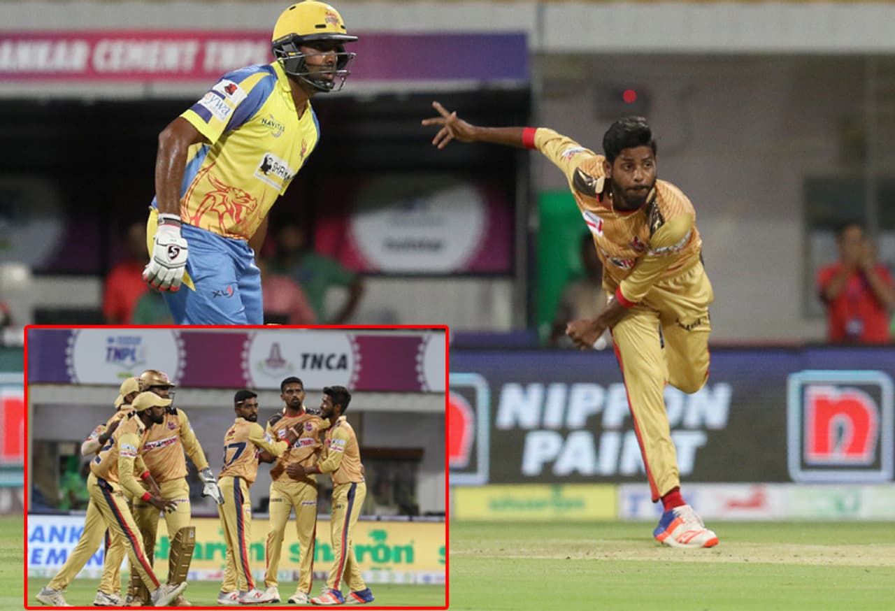 சற்று அதிரடி காட்டிய ஆர்.அஸ்வின் 37 ரன்களில் எம்.அஸ்வின் பந்தில் கேட்ச் ஆனார். அதற்கு பின் விவேக் 4 ரன்னிலும், சதுர்வேத் 21 ரன்னிலும், சுமந்த் ஜெயின் 10 ரன்னிலும், முகமது 3 ரன்னிலும், அபினவ் 8 ரன்னிலும், எம்.சிலம்பரசன் 2 ரன்னிலும் என அடுத்தடுத்து தங்களது விக்கெட்டுகளை இழந்து வெளியேறினர்.