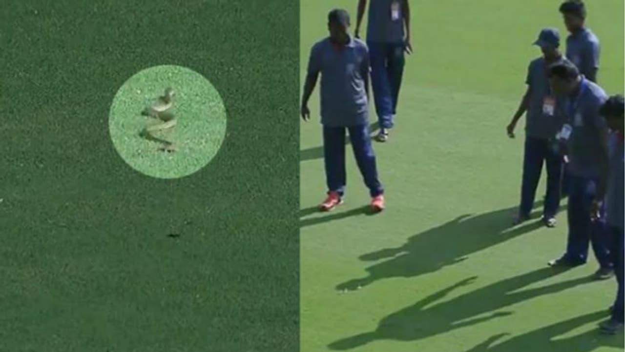 ஆந்திரா - விதர்பா அணிகளுக்கு இடையேயான ரஞ்சி போட்டியில் மைதானத்திற்குள் பாம்பு புகுந்ததால் ஆட்டம் தடைபட்டது குறிப்பிடத்தக்கது.