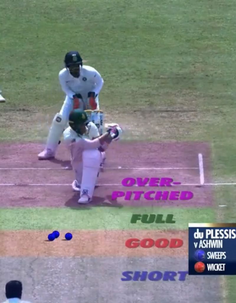 முதல் போட்டியிலும் சரி, இந்த போட்டியிலும் சரி.. அஷ்வினின் பவுலிங்கை தடுத்து ஆடாமல் அடித்து ஆடினார் டுப்ளெசிஸ். அஷ்வின் குட் லெந்த் ஏரியாவில் வீசிய பந்தை காலை மடக்கி மண்டியிட்டு அருமையாக ஸ்வீப் ஷாட் ஆடி பவுண்டரிகளாக விளாசிய டுப்ளெசிஸ், தனக்கு அபாரமாக ஆடவரும் ஸ்வீப் ஷாட்டையே தொடர்ந்து ஆடியிருக்கலாம்.