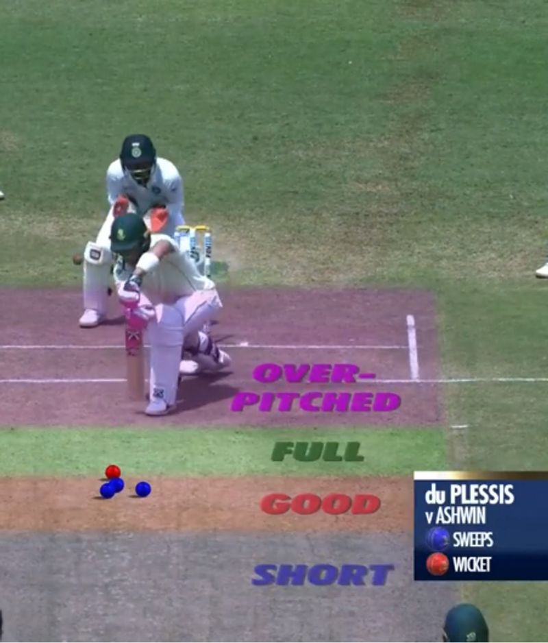 அதைவிடுத்து ஒரு பந்தை தடுத்தாட முயன்றார். அந்த பந்தில் வீழ்ந்தார். அஷ்வின் நல்ல லெந்த்தில் வீசிய பந்துகளை எல்லாம், பந்து பிட்ச் ஆகி எழும்போதே காலை மடக்கி அடித்த டுப்ளெசிஸ், அதே லெந்த்தில் வீசப்பட்ட ஒரு பந்தை தடுத்தாட முயன்று, ஸ்லிப்பில் கேட்ச் கொடுத்தார்.