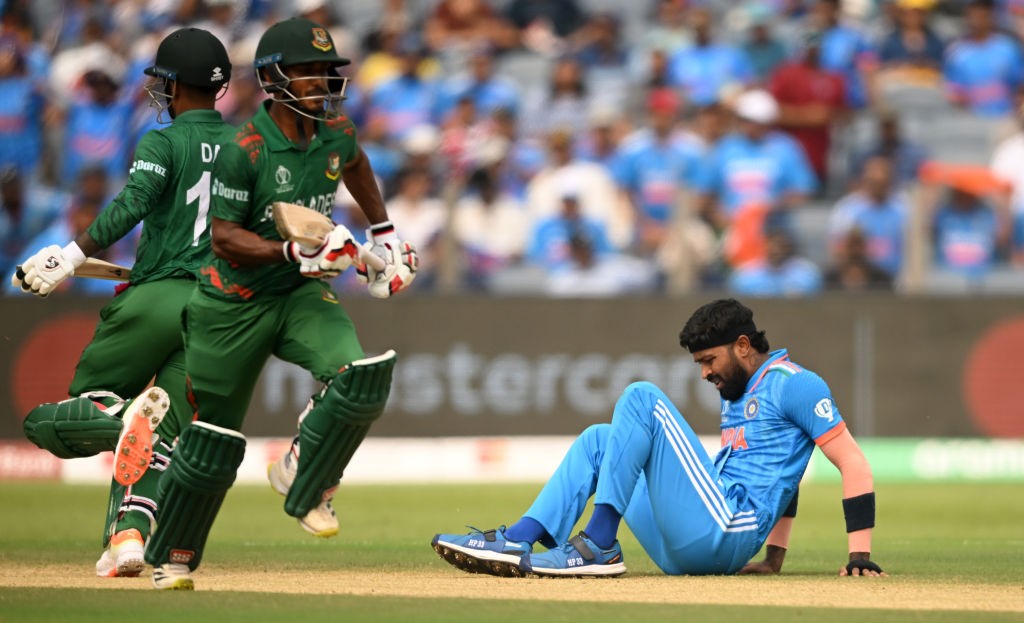 இந்தியா மற்றும் வங்கதேச அணிகளுக்கு இடையிலான 17ஆவது லீக் போட்டியில் முதலில் விக்கெட் விழாத நிலையில், ஹர்திக் பாண்டியாவை பந்து வீசுவதற்கு ரோகித் சர்மா அழைத்தார். இதையடுத்து ஹர்திக் பாண்டியா 9ஆவது ஓவரை வீசுவதற்கு வந்தார். முதல் பந்தில் ரன் ஏதும் எடுக்கப்படவில்லை. 2ஆவது பந்து பவுண்டரிக்கு சென்றது. ஸ்ட்ரைட்டாக அடிக்கப்பட்ட பந்தை ஹர்திக் பாண்டியா தடுக்கும் முயற்சியில் இறங்கிய போது தான் அவருக்கு இடது காலில் கணுக்கால் பகுதியில் காயம் ஏற்பட்டுள்ளது.