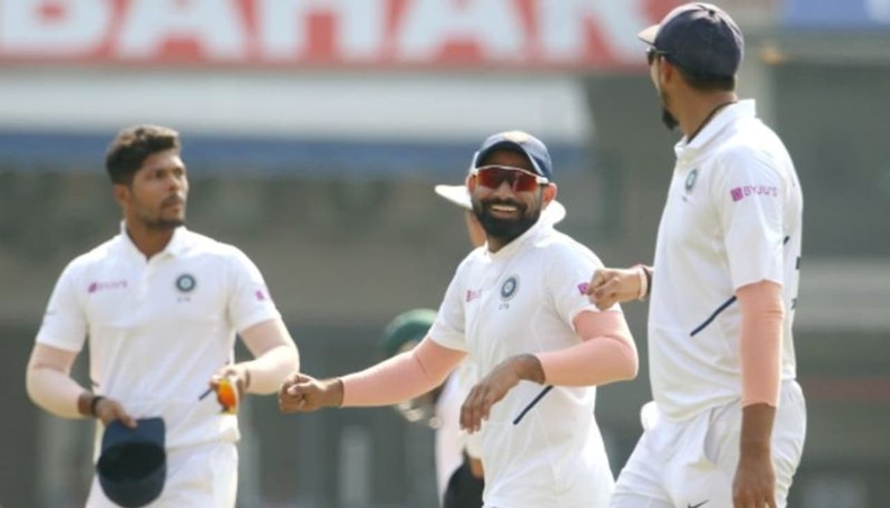 ஆனால் இம்ருல் கைஸை 4 ரன்களில் வீழ்த்தினார் இஷாந்த் சர்மா. அதன்பின்னர் கேப்டன் மோமினுல் ஹக் மற்றும் முகமது மிதுன் ஆகிய இருவரும் உமேஷ் யாதவின் ஒரே ஓவரில் டக் அவுட்டாகி வெளியேறினர். வங்கதேச அணியின் நம்பிக்கை நட்சத்திரமான முஷ்ஃபிகுர் ரஹீமும் ஒரு ரன் கூட எடுக்காமல் ஷமியின் பந்தில் டக் அவுட்டானார்.