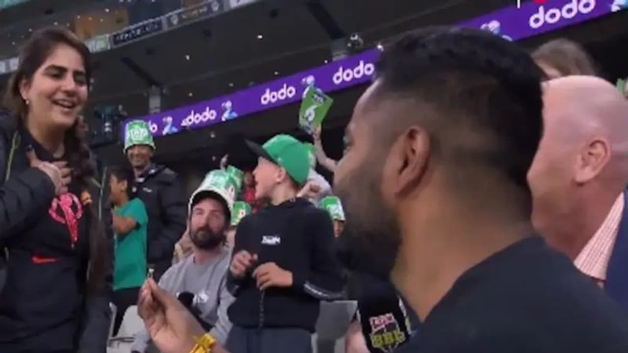 ஆஸ்திரேலியாவில் நடந்து பிக்பாஷ் டி20 போட்டியின் போது இந்திய ரசிகர் ஒருவர் தனது தோழிக்கு லவ் புரபோஸ் செய்த வீடியோ ஒன்று சமூக வலைதளங்களில் வைரலாகி வருகிறது.