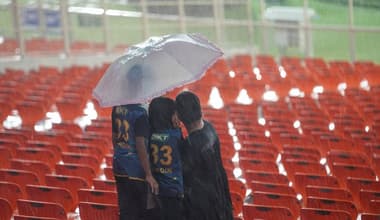 11 மணி வரையில் மழை நிற்கவில்லை என்றால் போட்டி நாளைக்கு ஒத்தி வைக்கப்படும்.