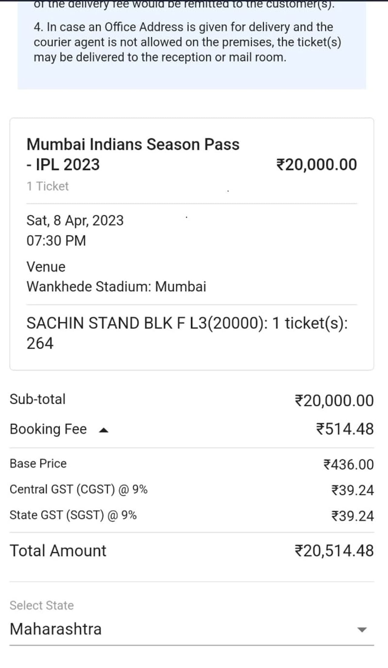 தற்போது வரையில் ஒரு சில போட்டிகளுக்கான ஆன்லைன் டிக்கெட் விற்று தீர்ந்துவிட்டன. அதிகபட்சமாக ரூ.20000 வரையில் டிக்கெட் விற்பனை ஆன்லைனில் விற்கப்படுகிறது. இதுதவிர மத்திய மற்றும் மாநில அரசுகள் வரி என்று ஜிஎஸ்டி வரியும் சேர்த்து வருகிறது. அதுமட்டுமின்றி உள்ளூரில் நடக்கும் போட்டிகளுக்கு ஒரு விலையும், வெளியூரில் நடக்கும் போட்டிகளுக்கு ஒரு விலையும் விற்கப்படுகிறது.