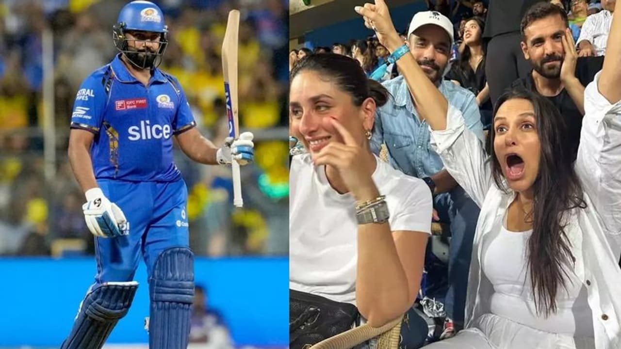 சென்னை சூப்பர் கிங்ஸ் அணிக்கு எதிராக நடந்த 29ஆவது லீக் போட்டியில் மும்பை இந்தியன்ஸ் வீரர் ரோகித் சர்மா சதம் விளாசி அசத்தினார். ஆனால், தனது சதத்தை அவர் கொண்டாடாத நிலையில், பாலிவுட் நடிகை கரீனா கபூர் உள்பட ரசிகர்கள் கொண்டாடிய வீடியோ தற்போது வைரலாகி வருகிறது.