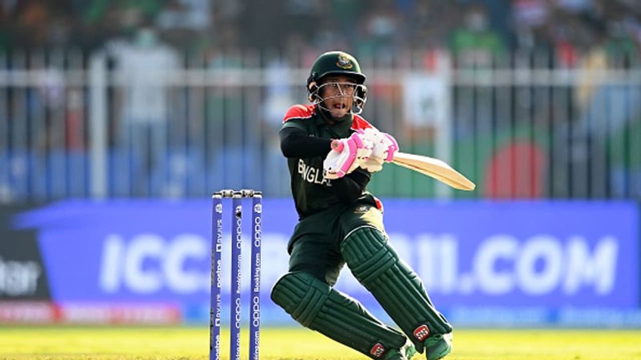 இதையடுத்து பேட்டிங் ஆட சவாலான ஷார்ஜா ஆடுகளத்தில் முதலில் பேட்டிங் ஆடிய வங்கதேச அணியின் தொடக்க வீரர் முகமது நைம் மற்றும் சீனியர் வீரர் முஷ்ஃபிகுர் ரஹீம் ஆகிய இருவரும் அபாரமாக ஆடி அரைசதம் அடித்தனர். வங்கதேச அணியின் தொடக்க வீரர் லிட்டன் தாஸ் 16 ரன்னில் ஆட்டமிழக்க, அவரைத்தொடர்ந்து சீனியர் வீரர் ஷகிப் அல் ஹசன் 10 ரன்னில் ஆட்டமிழந்தார்.
