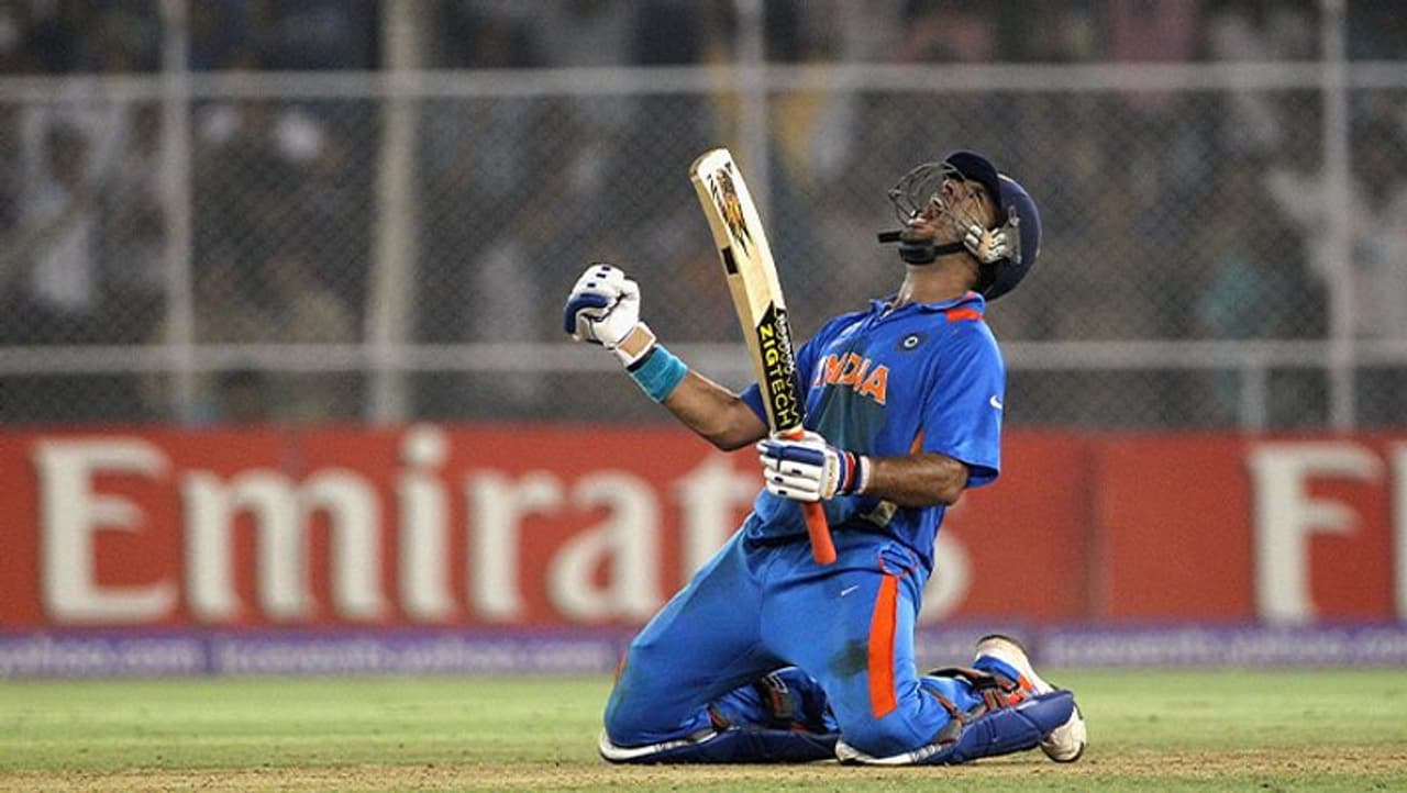 2011 மார்ச் 20 அன்று இந்தியா - வெஸ்ட் இண்டீஸ் இடையேயான லீக் சுற்று போட்டி சென்னை சேப்பாக்கத்தில் நடந்தது. இந்த போட்டியில் சேவாக் ஆடவில்லை. சச்சினும் கம்பீரும் தொடக்க வீரர்களாக இறங்கினர். சச்சின் டெண்டுல்கர் 2 ரன்களிலும் கம்பீர் 22 ரன்களிலும் ஆட்டமிழந்தனர். தொடக்கத்திலேயே இந்திய அணி 2 விக்கெட்டுகளை இழந்துவிட, அதன்பின்னர் விராட் கோலியுடன் இணைந்து அணியை சரிவிலிருந்து மீட்டெடுத்தார் யுவராஜ் சிங்.