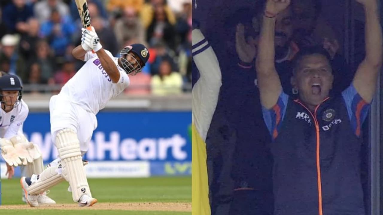 இங்கிலாந்துக்கு எதிராக ரிஷப் பண்ட் அடித்த சதத்தை பயிற்சியாளர் ராகுல் டிராவிட் கொண்டாடிய வீடியோ சமூக வலைதளங்களில் செம வைரலாகிவருகிறது.