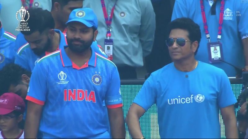 சச்சின் டெண்டுல்கருக்கு சிறிய அளவிலான அவரது முழு உருவச் சிலை நினைவுப் பரிசாக வழங்கப்பட்டது. இந்தப் போட்டியில் ரோகித் சர்மா 4 ரன்கள் எடுத்ததன் மூலமாக ஒரு இந்திய வீரராக ரோகித் சர்மா இந்த உலகக் கோப்பையில் 402 ரன்கள் குவித்துள்ளார்.