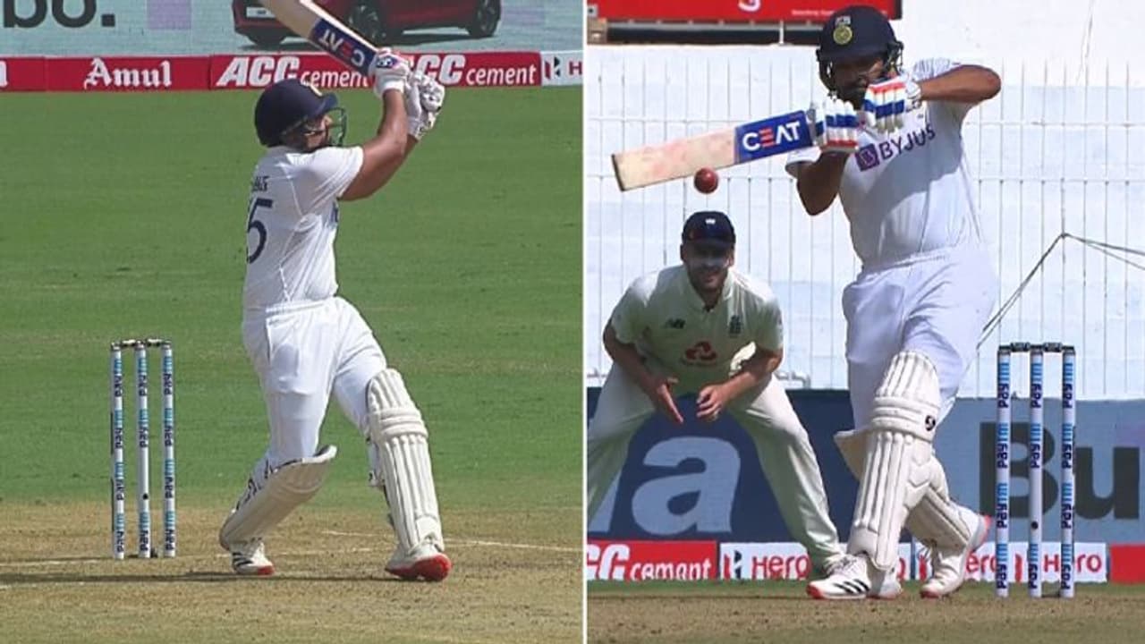 இங்கிலாந்துக்கு எதிரான 2வது டெஸ்ட்டில் இந்திய அணியின் தொடக்க வீரர் ரோஹித் சர்மா அதிரடியாக ஆடி சதமடித்துள்ளார்.