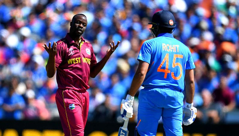 ரோச் வீசிய ஆறாவது ஓவரின் கடைசி பந்து ரோஹித்தின் பேட்டுக்கும் கால்காப்புக்கும் இடையே புகுந்து விக்கெட் கீப்பரிடம் சென்றது. வெஸ்ட் இண்டீஸ் வீரர்கள் அப்பீல் செய்ய அம்பயர் அவுட் கொடுக்க மறுத்துவிட்டார். வெஸ்ட் இண்டீஸ் அணி நம்பிக்கையுடன் ரிவியூ எடுத்தது.
