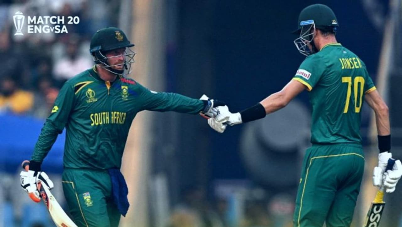இங்கிலாந்து மற்றும் தென் ஆப்பிரிக்கா அணிகளுக்கு இடையிலான 20ஆவது லீக் போட்டி மும்பை வான்கடே மைதானத்தில் நடந்தது. இதில் முதலில் டாஸ் வென்ற இங்கிலாந்து கேப்டன் ஜோஸ் பட்லர் பவுலிங் தேர்வு செய்தார். அதன்படி முதலில் பேட்டிங் செய்த தென் ஆப்பிரிக்கா இங்கிலாந்திற்கு எதிராக அதிகபட்சமாக 399 ரன்கள் குவித்தது. இதில் அதிகபட்சமாக ஹெண்ட்ரிச் கிளாசென் 109 ரன்களும், மார்கோ ஜான்சென் 75* ரன்களும் எடுத்தனர்.
